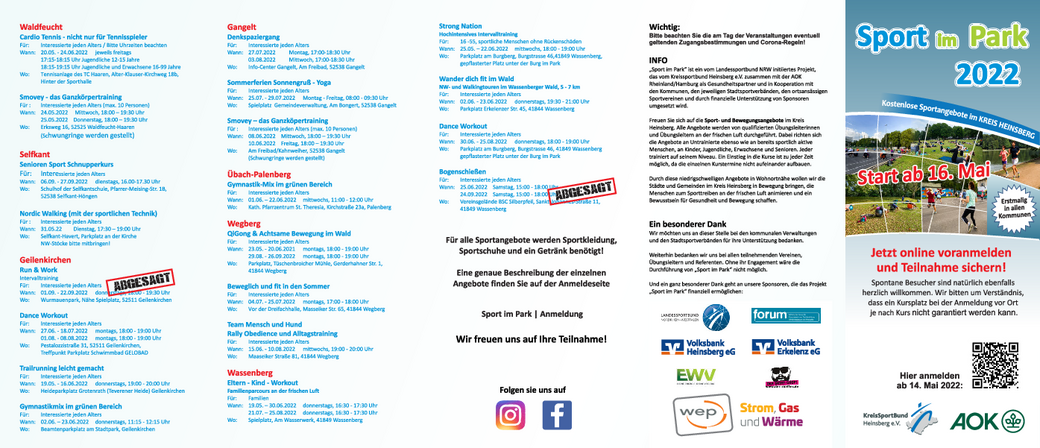 Auch in 2022 war "Sport im Park" fester Bestandteil der Sportlandschaft im Kreis Heinsberg.