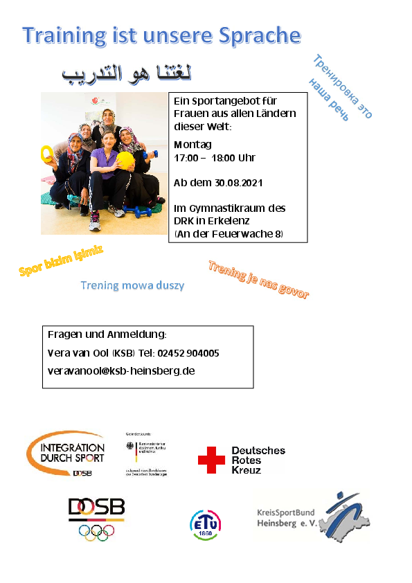Ab dem 30.08.2021 findet montags von 17:00-18:00 Uhr ein Sportangebot für Frauen aus aller Welt statt.